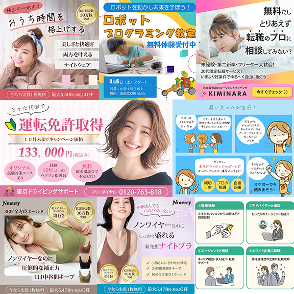 サイトの目的や訴求内容に合わせて、トップ画像やバナーなどのWeb用画像を制作します。全体のデザインとの統一感を大切にしながら、サービスや想いが一目で伝わるビジュアルで、印象に残るWeb表現をサポートします。